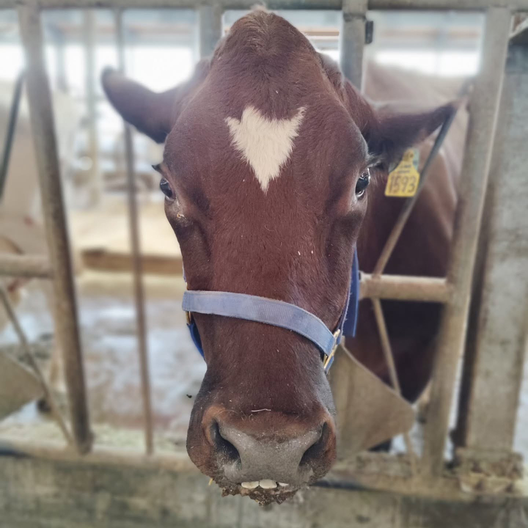 | 体調良いい感じだとシャクレて受け口になるとか!ならんとか!!という噂がある子です😂 上向きのまつ毛が美しいと、子牛の頃から評判でしたが、いつの間に下の歯がこんなに出るように??! 子牛の頃の顔は、2023.1月に投稿してました | ![]() |