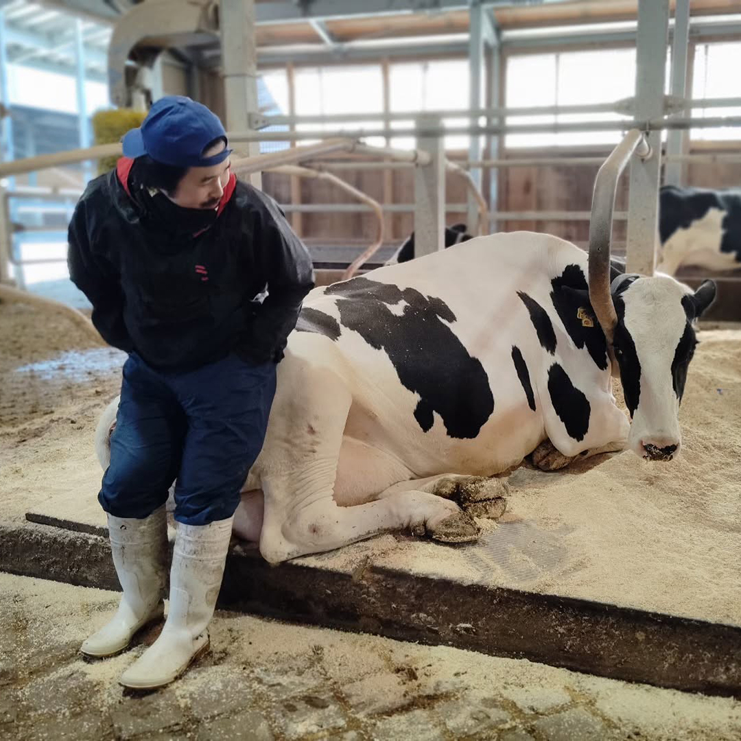 | 朝の搾乳後にまったりムードのお母さん牛…優しい眼差しが可愛いです。